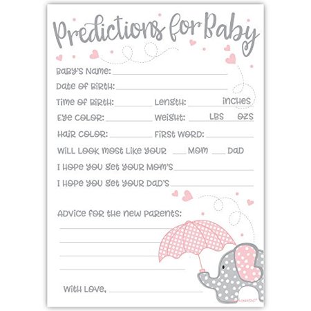 50 pink elephant predictions and advice cards - girl baby ... from i5.walmartimages.com We did not find results for: Downloadable baby shower prediction cards. Check spelling or type a new query. Maybe you would like to learn more about one of these?